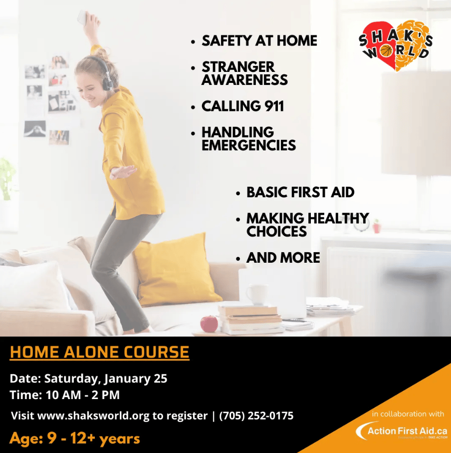 Empower your child with the confidence and skills they need to stay home alone safely. The Home Alone Course at Shak’s World is designed for children ages 9 to 12+ and provides essential knowledge on handling emergencies, making safe choices, and basic self care while at home. Registration is $75.