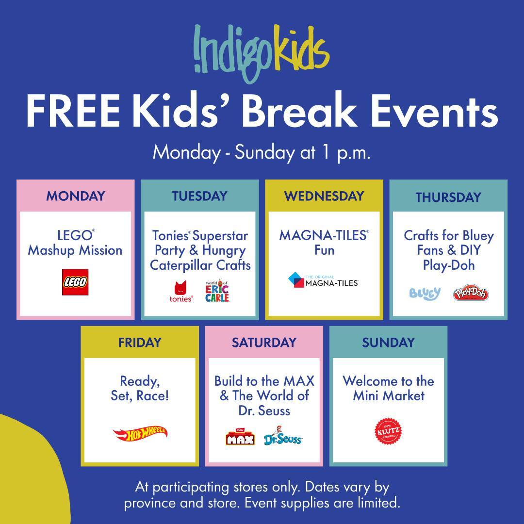 Indigo Barrie is hosting free Kids Break events this weekend. First come first served, event supplies are limited!